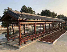 湖北黃岡小青瓦防腐木古建長廊 這個項目是湖北黃崗市的一個村里,定制的是一套古建小青瓦防腐木長廊,尺寸是長度11米,寬度為2.8米,總面積為30個平方米左右。陳總在網上找到我們